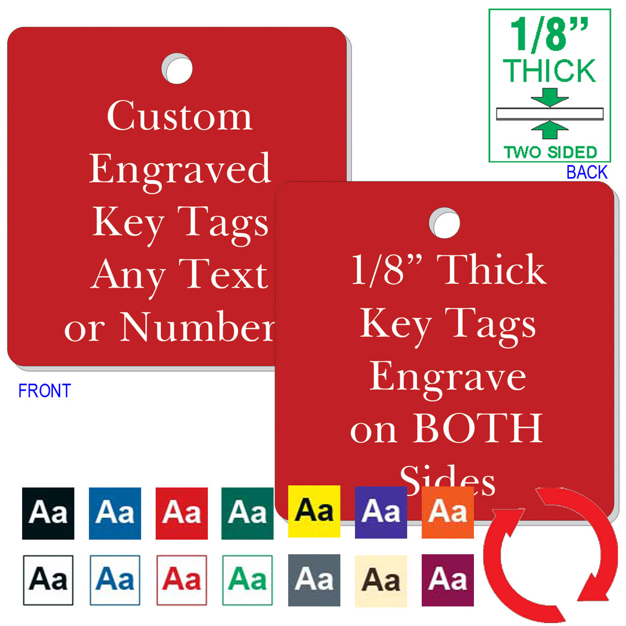 Our 3" x 3" Square tags are manufactured in the USA of indestructible 1/8” (.125”) thick, 3 ply outdoor rated, UV stable engravers plastic for long life.